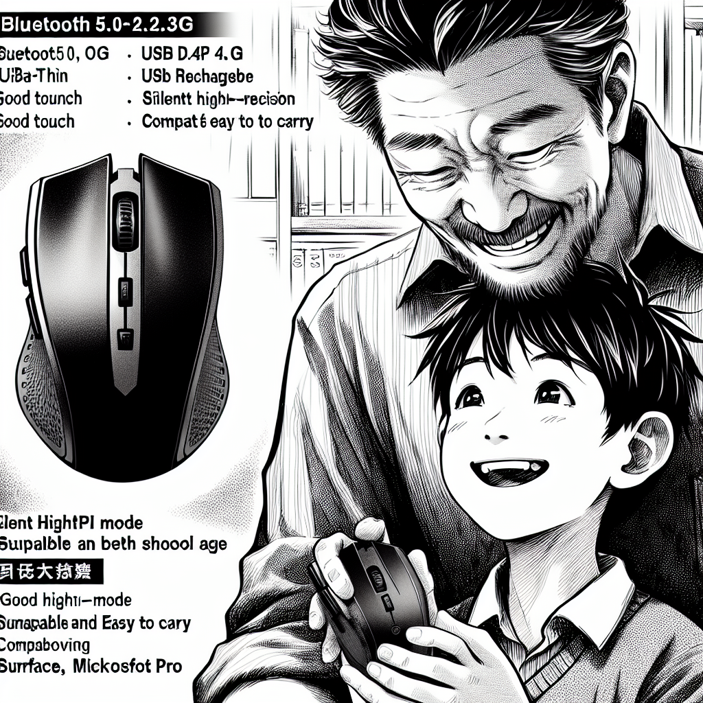 今回、マウスワイヤレス Bluetooth5.0+2.4G ダブルモード USB充電式 超薄型 3DPIモード 両手使用可能 無線マウス USBレシーバー 静音 高精度 コンパクト 持ち運び便利 肌触り良い ボタンを調整可能 省電力 1600DPI 一 Mac/Windows/Surface/Microsoft Proに対応を息子と一緒に体験してみて、静音性、ワイヤレスの快適さ、そして持ち運びやすさに親子で大満足の結果となりました。