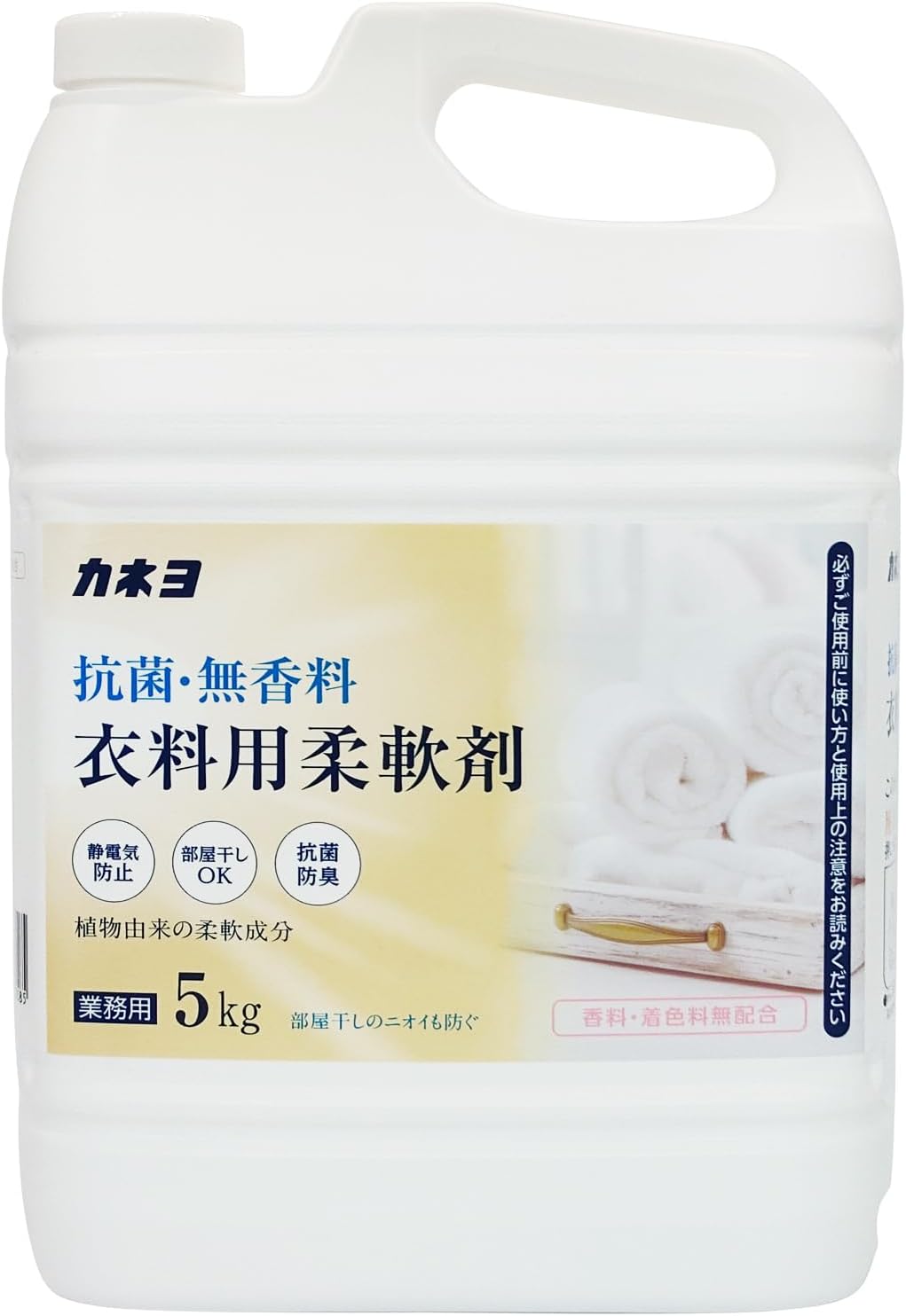 👉 Amazonで カネヨ石鹸【大容量】 抗菌・無香料 衣料用柔軟剤 液体 業務用 5kg コック付 日本製 の価格をチェック